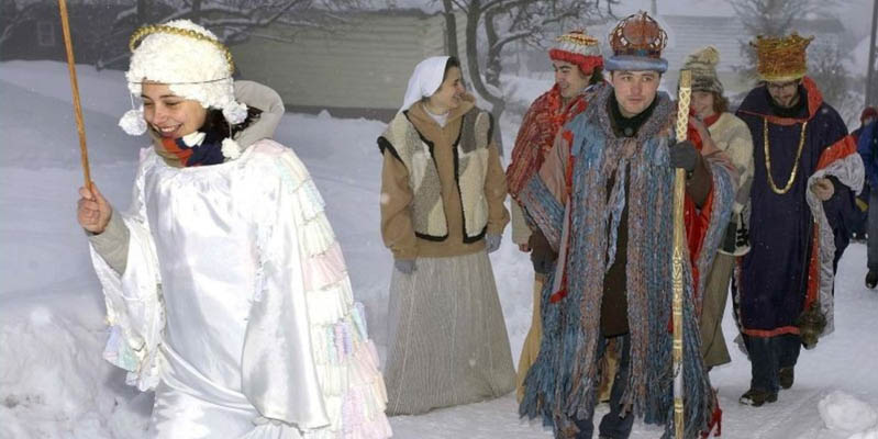 Самый известный обычай - это хождение мальчиков, одетых в длинные белые рубашки, с коронками на голове, которые исполняют пьесу Трёх королей - парафраз истории Нового завета, описывающей посещение новорождённого Иусуса Христа Тремя королями.